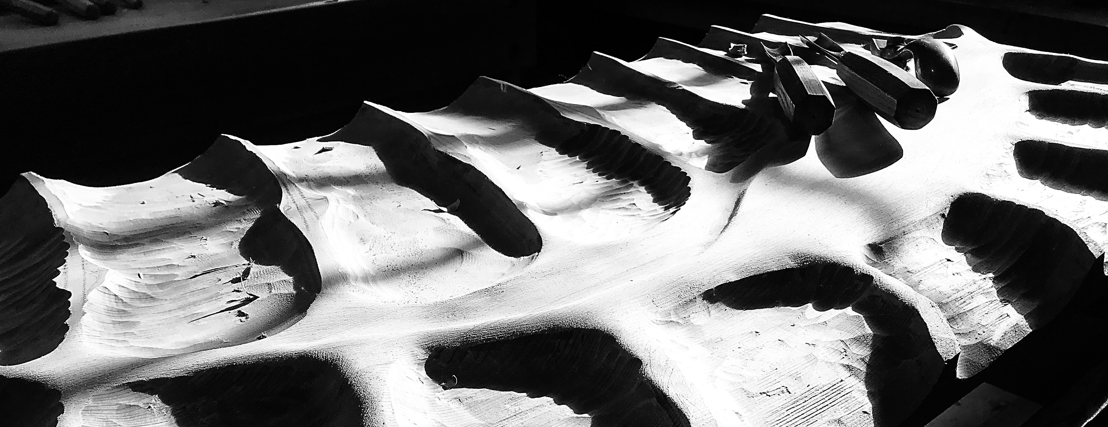 This is where the process really starts. Having gathered a variety of hand tools, I’m able to work on the topography in the way that suits me. The way I imagined in the years trying to take the step to do this instead of just think about doing it. I have considered the possibility that I am just making the work that suits the tools and methods I want to use. I’m not sure it matters.
